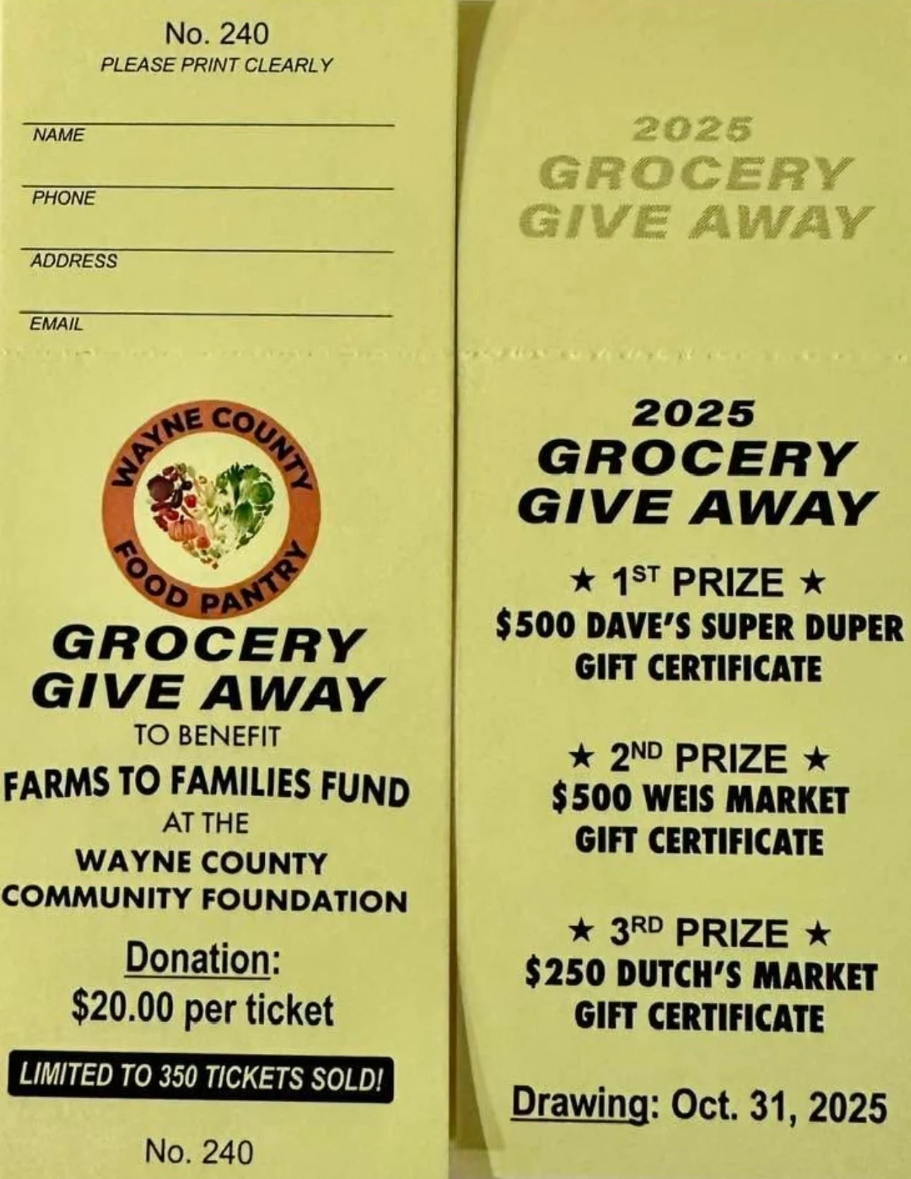 Tickets are just $20 (only 350 available) and benefit the Farms to Families Fund at the Wayne County Community Foundation.